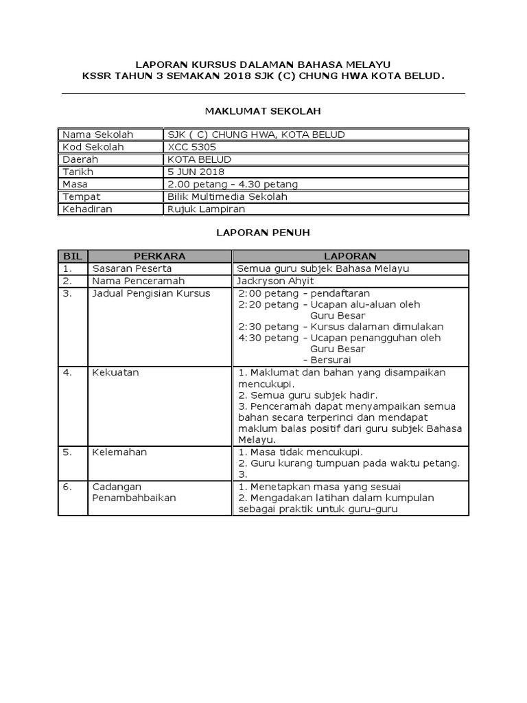 Contoh Laporan Kursus Dalaman / *semoga post kali ini bisa membantu sobat deul yang lagi cari info untuk pembuatan laporan praktik kerja lapangan (pkl) untuk smk khususnya yg jurusan akuntansi tpi nggak menutup kemungkinan bakal berguna juga kok bagi yang jurusan lain.. Setelah selesai taklimat/kursus dalaman guru tersebut perlu menyediakan laporan untuk dihantar satu salinan ke ppd seremban. Nah, sayangnya membuat laporan kegiatan pramuka itu tidak semudah mengikuti kegiatan pramuka itu sendiri. Salvaresalvați contoh laporan kursus dalaman pentru mai târziu. Kursus dalaman disiplin dan literasi undang_undang 2013. Berikut ini adalah contoh teks laporan hasil observasi tentang lingkungan sekolah: