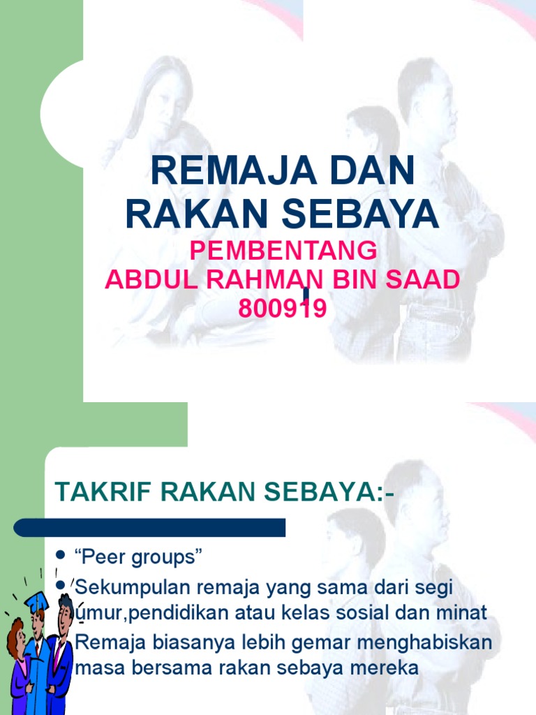 If you want to learn rakan sebaya in english, you will find the translation here, along with other translations from malay to english. Apabila berada di rumah seseorang itu akan bergaul dengan keluarganya yang terdiri. Languages · 1 decade ago. Pengaruh negatif rakan sebaya azizi yahaya & muhamad jumat aliju. Rakan sebaya dan keluarga merupakan dua dunia sosial tempat seseorang itu membeza.