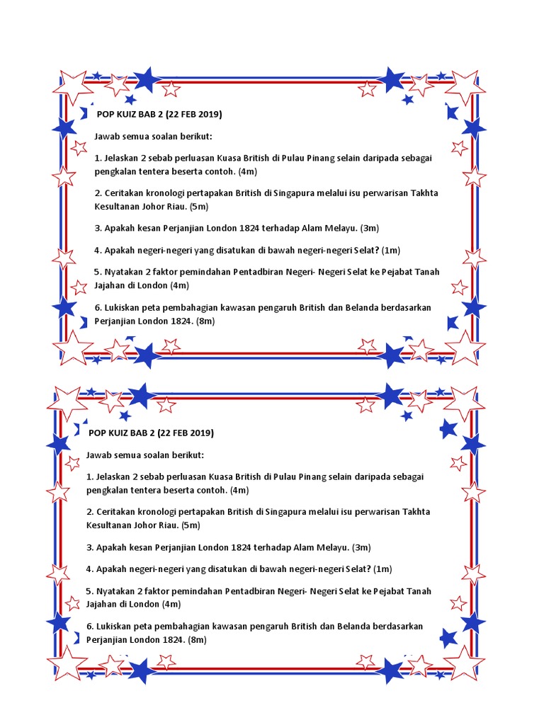 Perluasan pengaruh asing di sabah melibatkan beberapa. · johor menjadi pengeksport lada hitam dan gambir di dunia melalui pelaksanaan sistem kangcu. Tingkatan 3 sejarah perluasan kuasa british di melaka. James buchanan duke diangkat menjadi pemimpin pertama bat dan melakukan perluasan pasar di berbagai negara, seperti kanada, tiongkok, dan australia. 2 kemunculan kesultanan johor lama serta kuasa dan pengaruh luar. Walaupun mengiktiraf negeri johor sebagai negeri berdaulat , kebimbingan terhadap kemaraan kuasa barat lain telah menyebabkan british. Johor bahru malaysia terletak di 7254.86 km barat laut dari mekah. Perjanjian itu juga membahagikan kesultanan johor menjadi johor moden dan kesultanan riau yang baru. Dengan perjanjian british dan belanda, belanda dapat menguasai.? British mengiktiraf nnmu dibawah naungansiam. Sejarah kssm tingkatan 3 32 perluasan kuasa british di perak selangor negeri sembilan dan pahang. Negeri yang mempunyai ciri tersebut: Dimanakah kuasa british di naning?