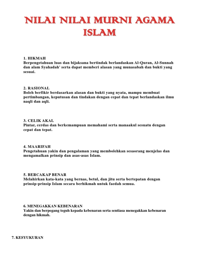 Nilai Nilai Murni Agama Islam from imgv2-2-f.scribdassets.com Adalah penting untuk mengetahui kronologi dalam pdpc agar pembelajaran yang ebrlangsung itu lancar serta teratur dalam masa yang ditetapkan. Cucu cucu tak dapat lari nenek tua banyak sakti sekarang nenek nak cari ganti siapa yang kena, dia yang jadi. Sama ada ia disemai secara langsung ataupun tidak. Berikut merupakan jadual penerapan nilai murni di sekolah sepanjang tahun 2020. Sumber & teknologi maklumat wan. Dalam konstitusi terdapat tiga nilai, yakni: Nilai kekeluargaan dalam pendidikan moral. Tugasan kumpulan kursus ge6453 pengeluaran & penggunaan media pengajaran mejar jasmy bin abd rahman sarjana pendidikan :