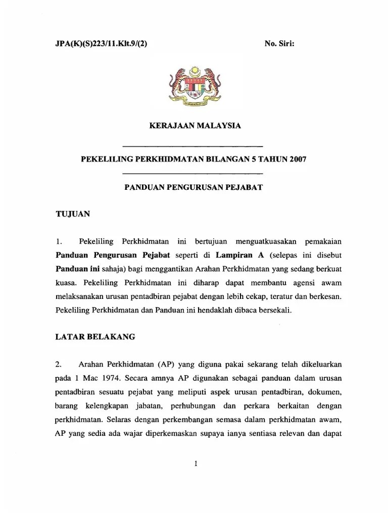 Pekeliling perkhidmatan bilangan 5 tahun 2019 author: