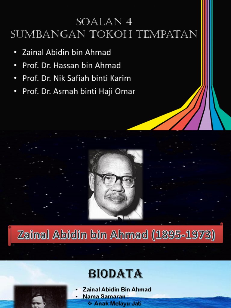 Tokoh Pendidikan Docx Document from cdn.vdocuments.mx Pedigree report of zainal abidin bin ahmad. Zainal abidin ahmad atau lebih dikenali sebagai za'ba dilahirkan pada tahun 1895 di sebuah kampung terpencil yang terletak dekat batu kikir, jempol negeri sembilan. Dalam bab ini, satu tinjauan umum akan diberikan tentang seorang tokoh dalam bahasa, sastera, ekonomi, agama, mahupun politik iaitu zainal abidin bin ahmad atau lebih dikenali dengan nama za'ba. Zainal abidin bin ahmad was last seen: Ahmad murtazam a juga konsultan kardiologi senior di institut jantung negara (ijn) dari tahun 1989 hingga 1995. Zainal abidin bin ahmad merakyatkan perkhidmatan awam meningkatkan kecekapan pelaksanaan urusan spa usaha. Ahmad zainal abidin abd razak. Ahmad zamil — bin mohd idris, or zamil (born april 23, 1978 in kuala lumpur) is best known as one of the season 1 finalists in the popular malaysian reality talent show, malaysian.